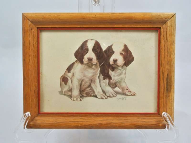 50’s Vintage Pointer Puppies Print Signed by Grace Lopez