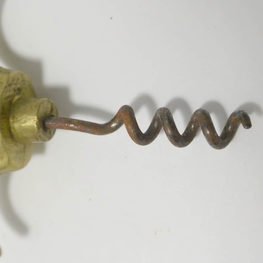 It is in vintage condition, with the body/handle, including the dog in very good condition, and the corkscrew showing some rust, but still in good working condition. It measures 4 1/4″ tall to the tip of the corkscrew, x 2 1/2″ wide.