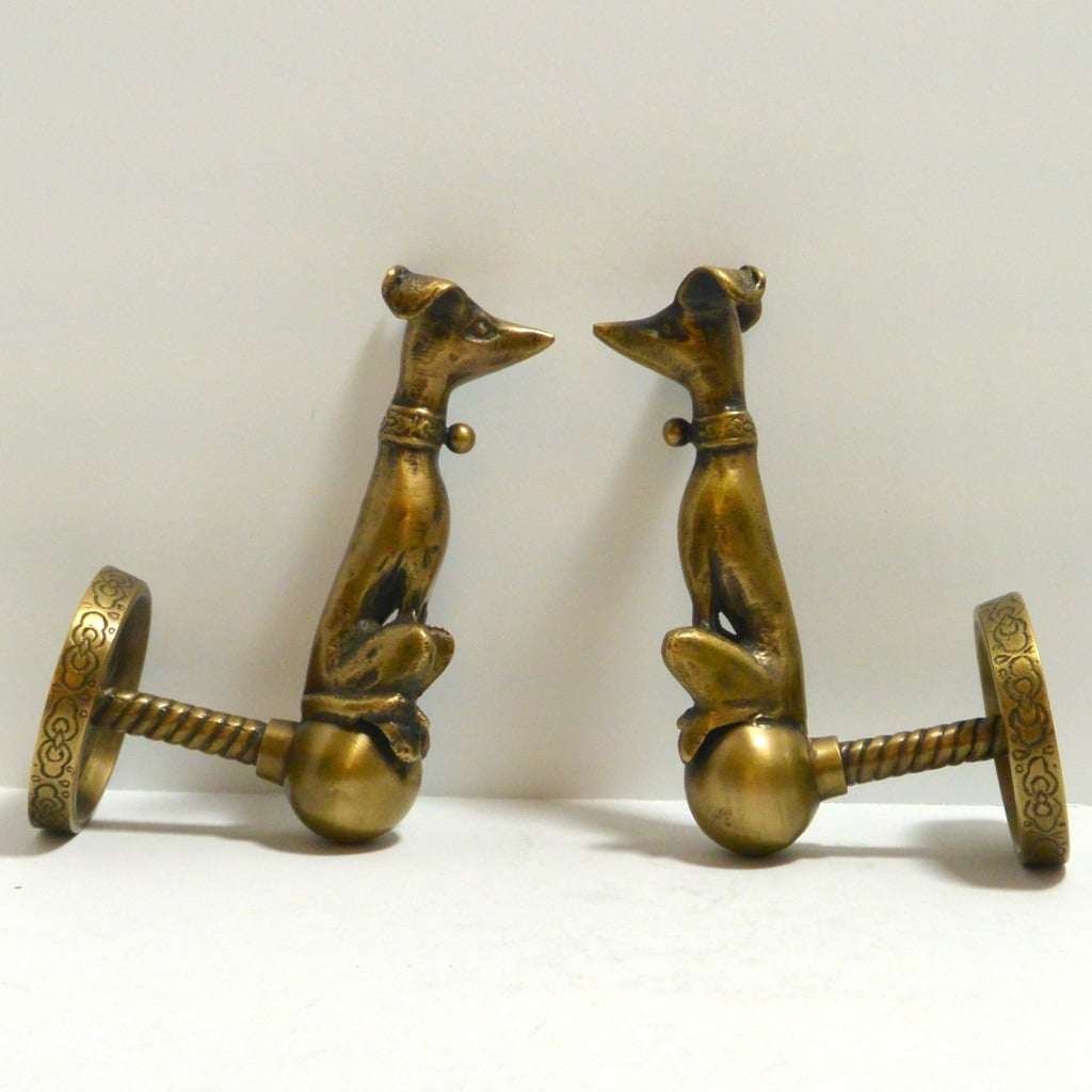 This unique pair of wall sconces feature full-body figurines of Whippet dogs. They are a perfectly matched pair, measuring 7 3/4″ tall x 4″ long x 3 1/2″ wide each.