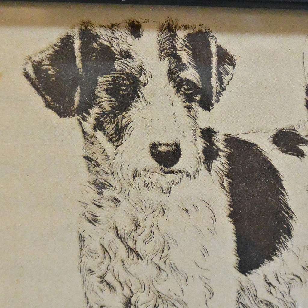This pair of vintage Diana Thorne prints are of two adorable puppies. The first is a Springer Spaniel, and it is entitled “The Accused”. The second is a Wire-Haired Fox Terrier, and it is entitled “A Live Wire”.
