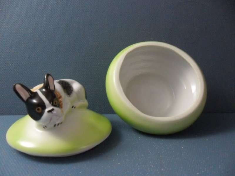 We’d trust that this would be a terrific place to safely store your special trinkets. The little French Bulldog on it’s top looks ready to pounce on anyone who ventures too close!
