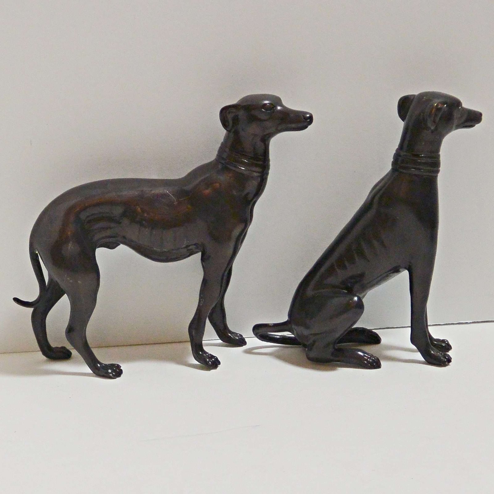 Each one of these wonderful Greyhound or Whippet figurines is marvelous. To find all three perfectly matched dogs together is extraordinary.