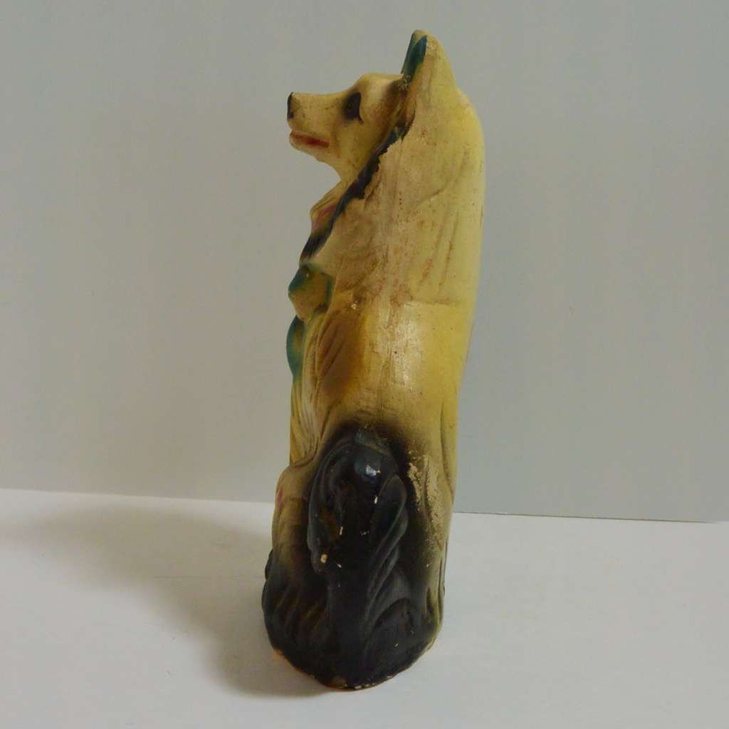 This fabulous, vintage chalkware Collie dog bank dates back to the 1930’s.