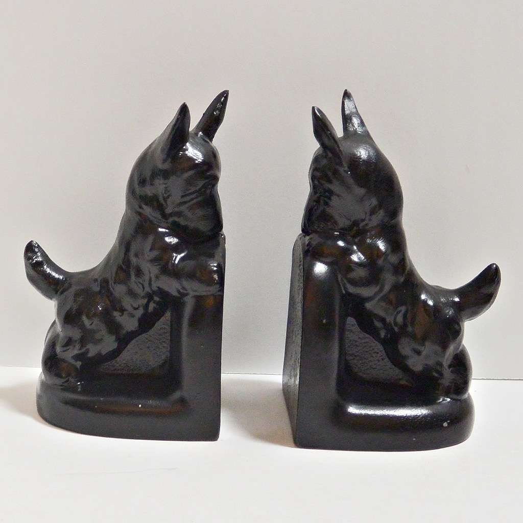 Peeking over a wall, and just as sweet as can be, this pair of Scottish Terrier dogs form these Art Deco, Nuart (NYC) bookends.