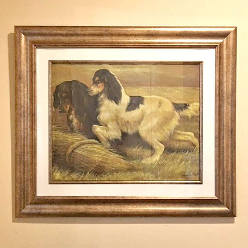Oil on Silk Portrait of Two Retriever Dogs – Artist Signed