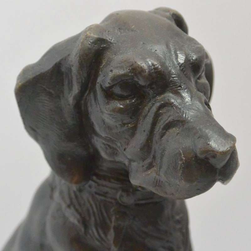 Sitting 9″ tall x 8″ long x 3 1/2″ wide, this distinguished-looking, bronze Retriever dog definitely as a story to tell.