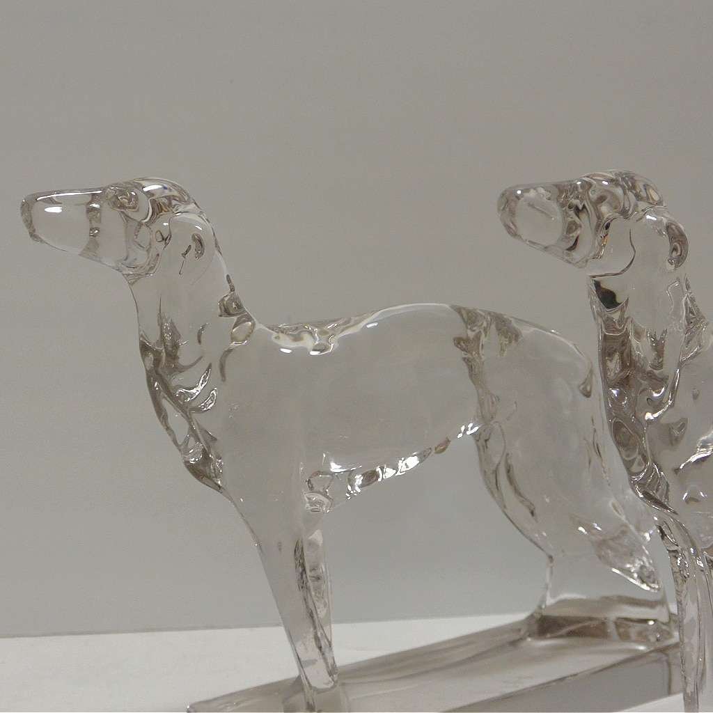 Capturing all the elegance and quiet dignity of these breeds, this pair of heavyweight glass Borzois or Wolfhounds each stand a full 7 1/2″ tall x 8 3/4″ long x 2″ wide.