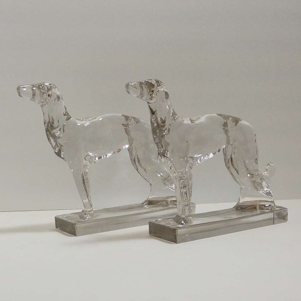 Viking Glass Borzoi Wolfhound Bookends c.1941