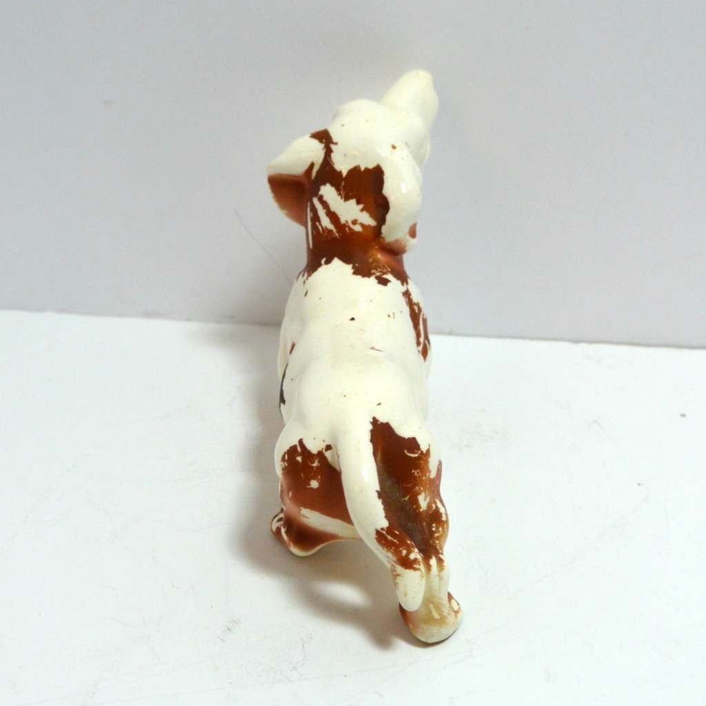 This once-perfect, ceramic Dachshund dog figurine is in need of a “forever home.” He stands 3 1/2″ tall x 4 1/2″ long x 1 1/4″ wide.