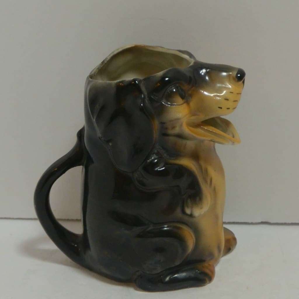 This unique, porcelain, figural dog creamer was made in Germany in the 1930’s.