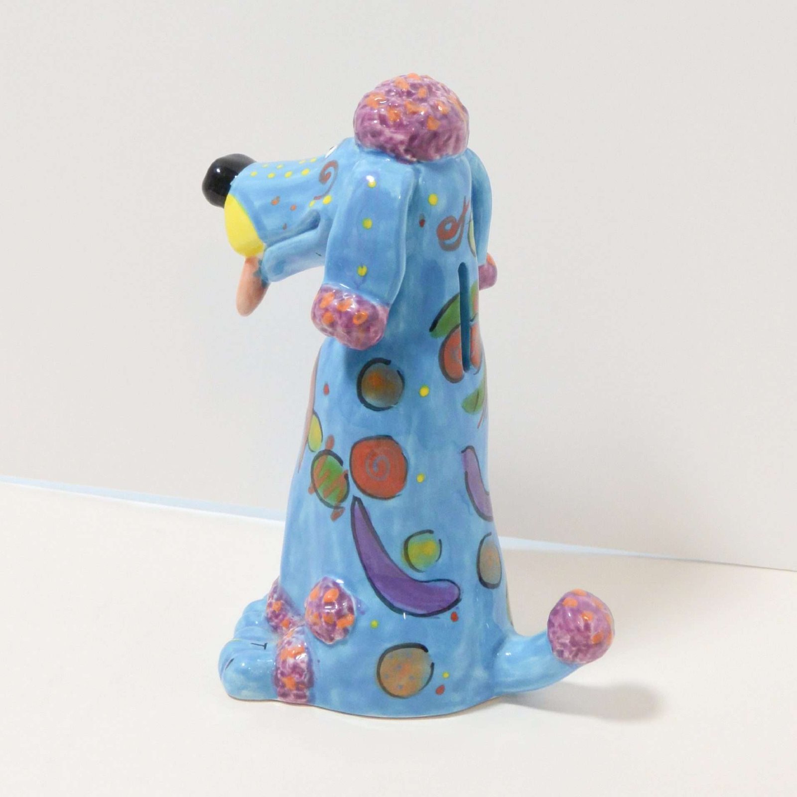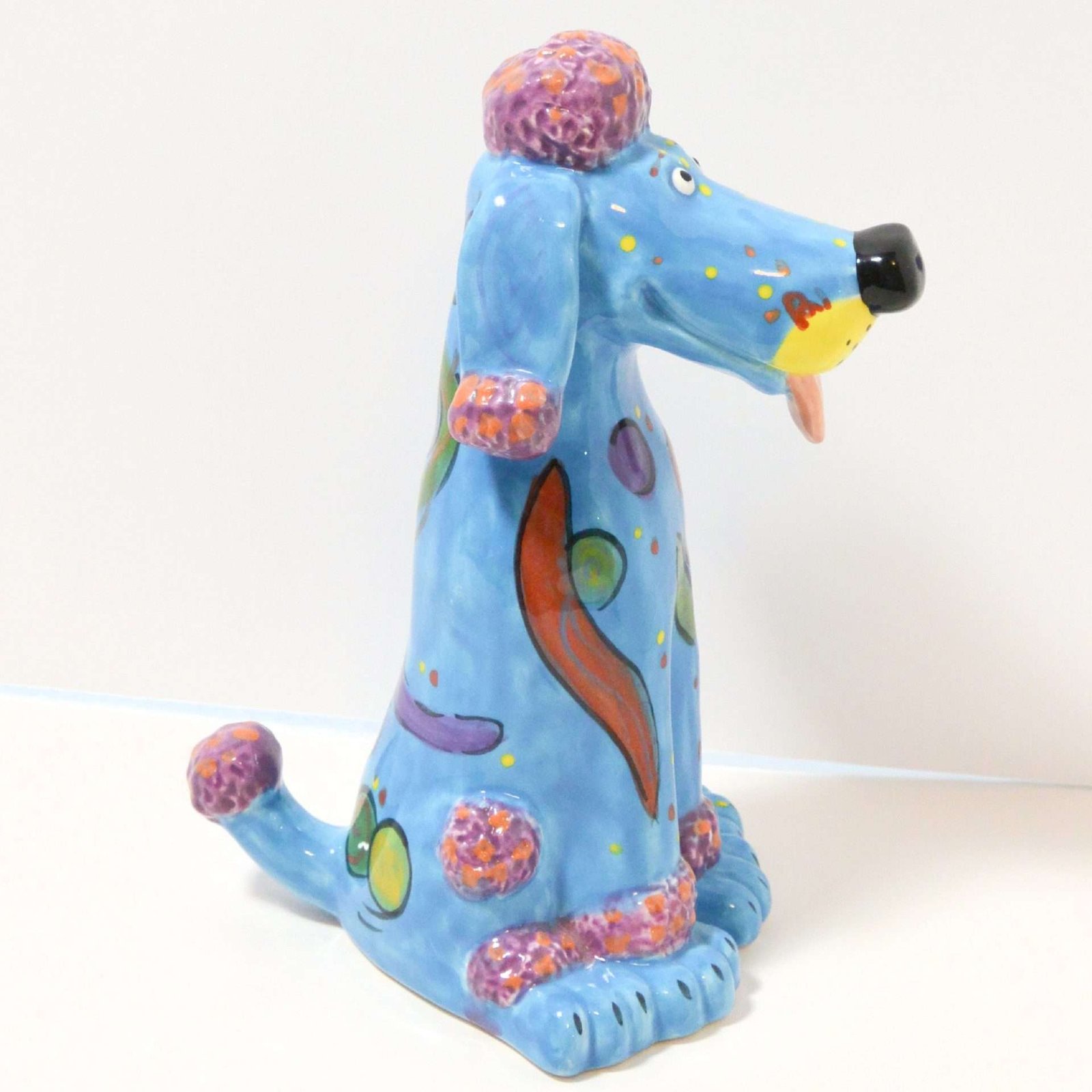 Reminiscent of the bright, bold art of the 1960’s through the 1980’s, this fabulous seated Poodle  dog is not your standard “standard” poodle!
