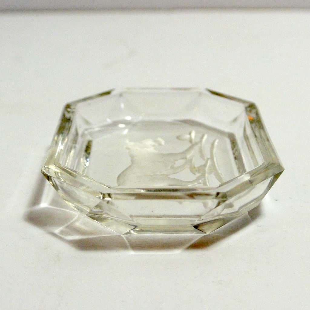 Vintage Glass Intaglio Dog With Ball Salt Dish