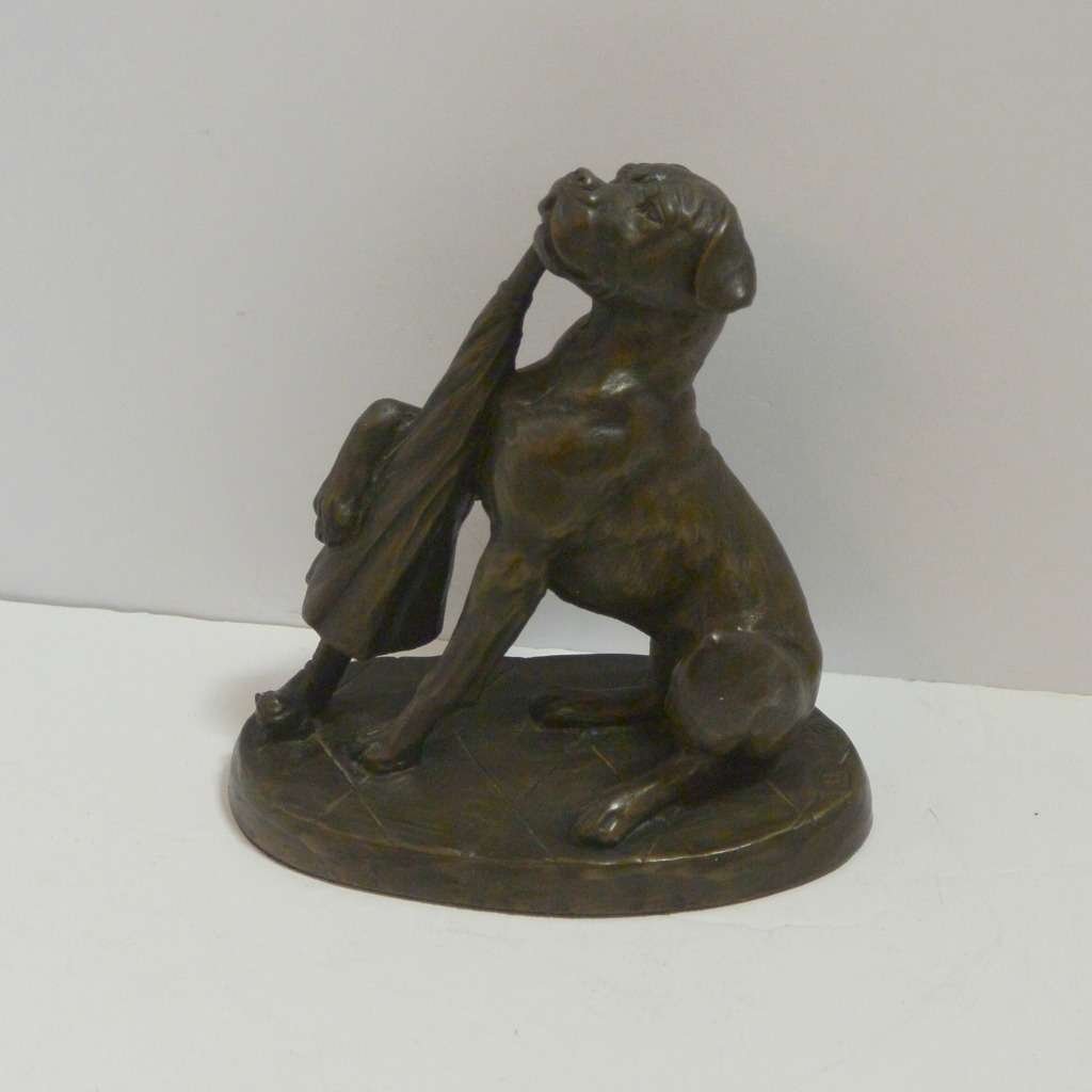 Vintage Heredities Bronze Boxer Dog with Umbrella