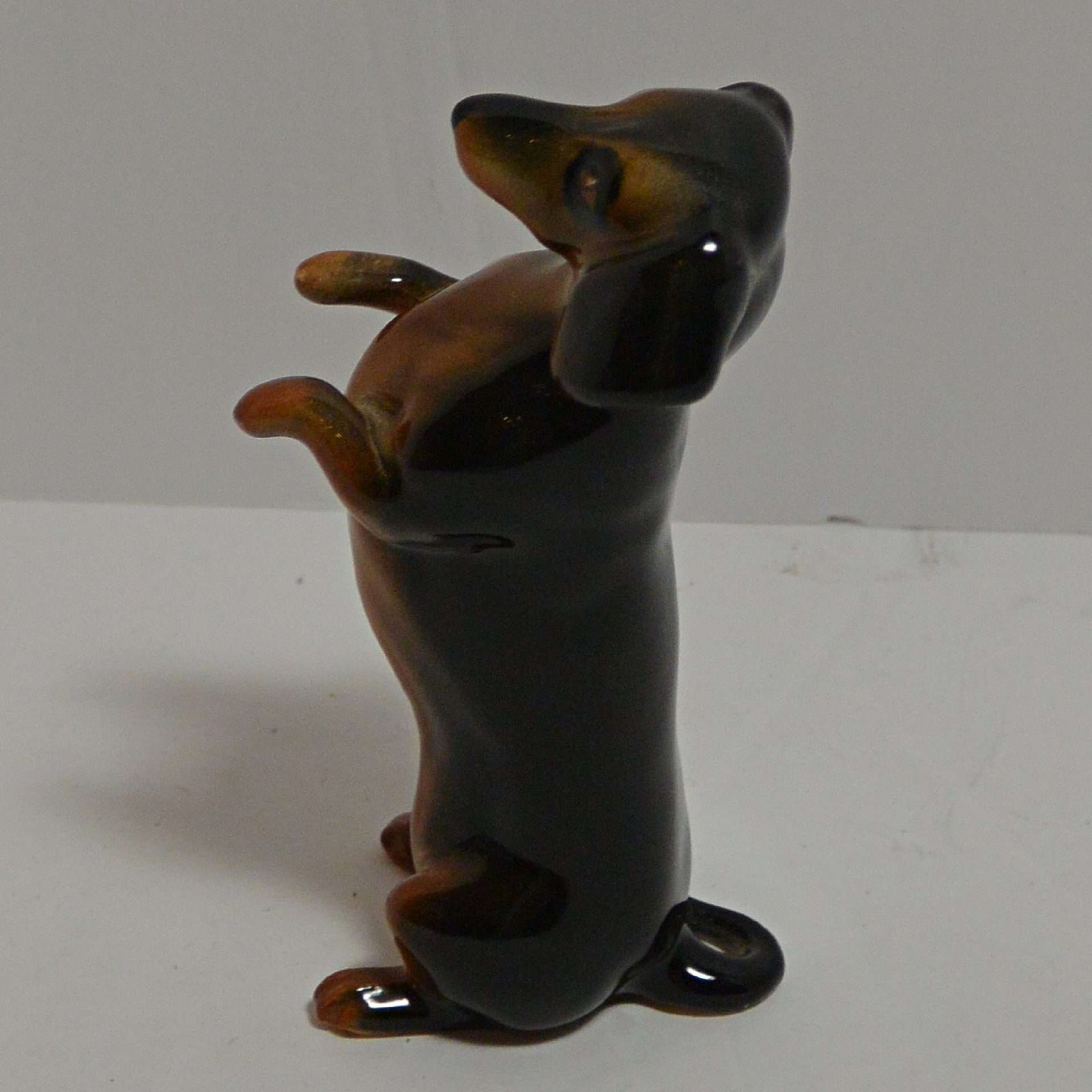 This sweet, vintage,porcelain Dachshund dog figurine looks to be either “begging” for a treat or standing tall to meet her human’s gaze. Either way, she is positively enchanting.