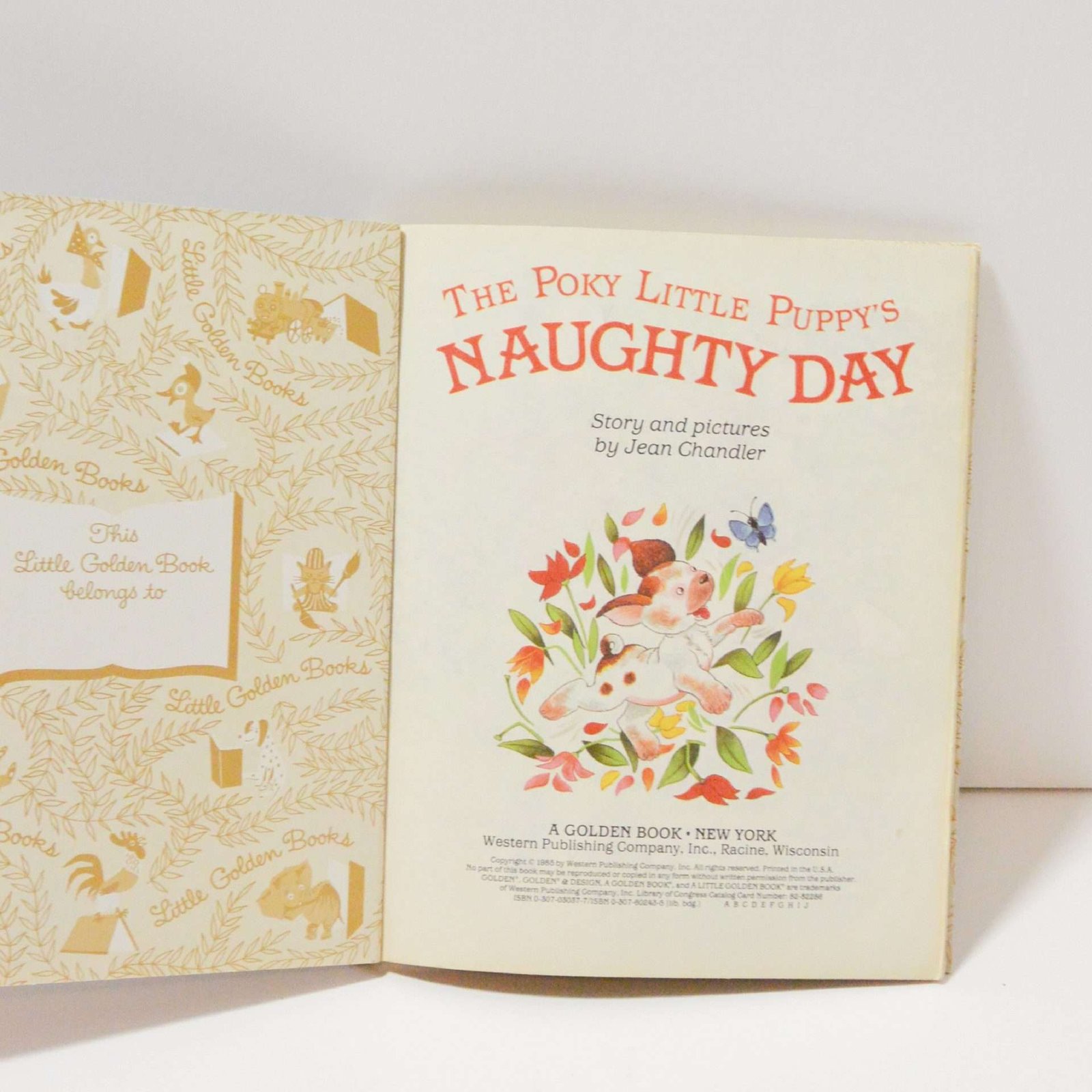 The set of three “Little Golden Books” includes: “The Poky Little Puppy” 1942 ed, “The Poky Little Puppy’s Naughty Day” 1985 ed, and “The Poky Little Puppy’s First Christmas” 1993 ed.