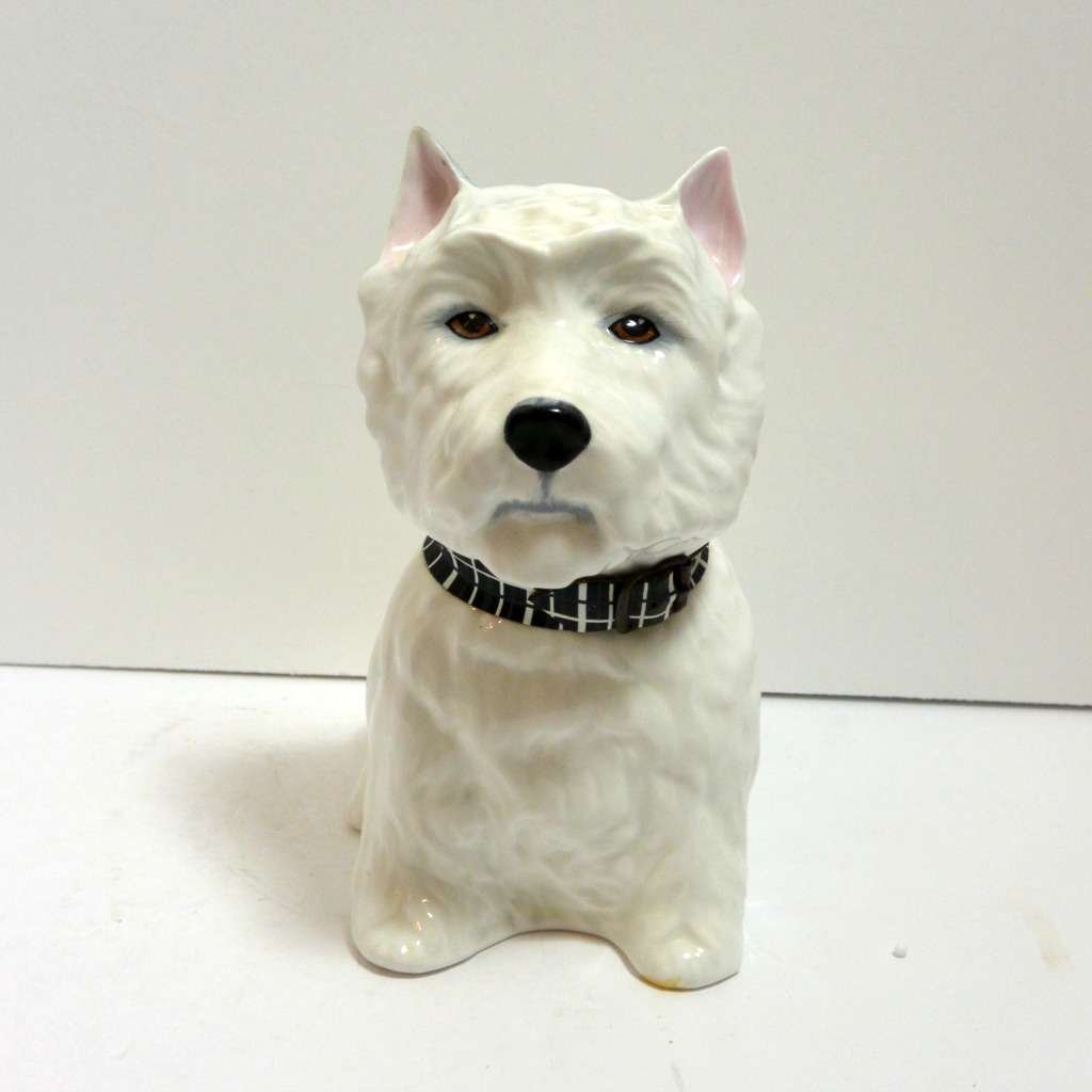 From the pale pink insides of his ears, to his luscious fur lines, everything is perfect about this English bone china Westie dog decanter!
