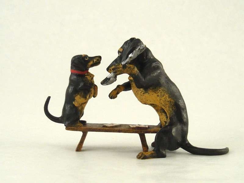 Bermann Vienna Wiener Bronze Dachshund and Pup Miniature