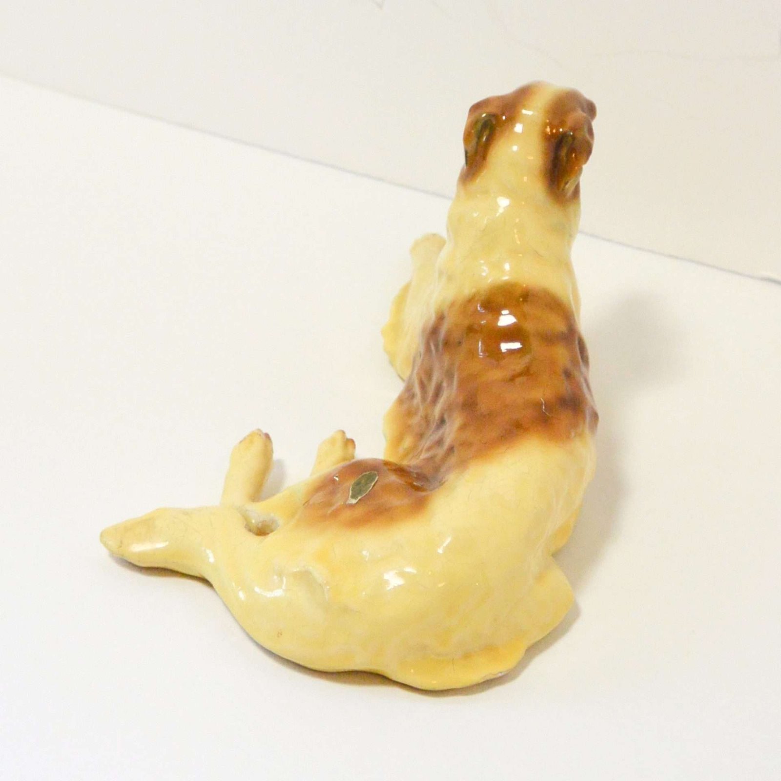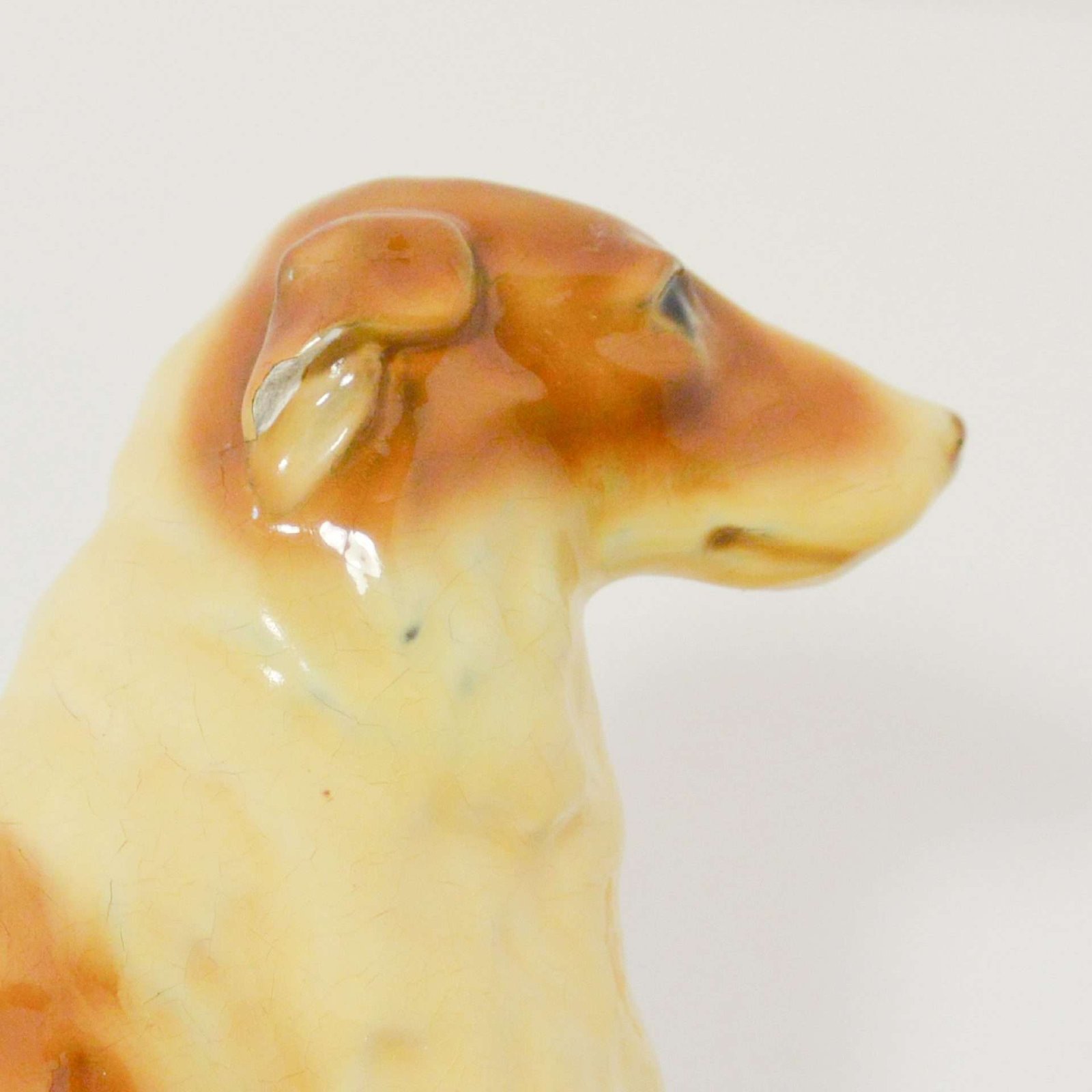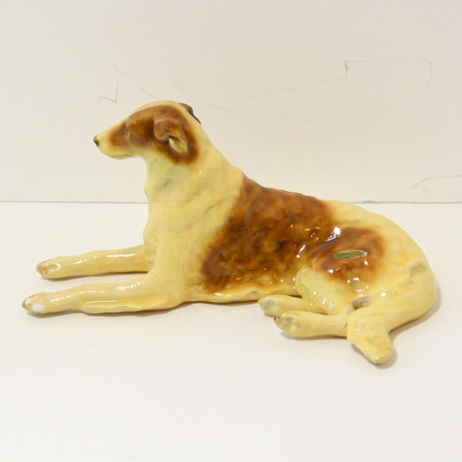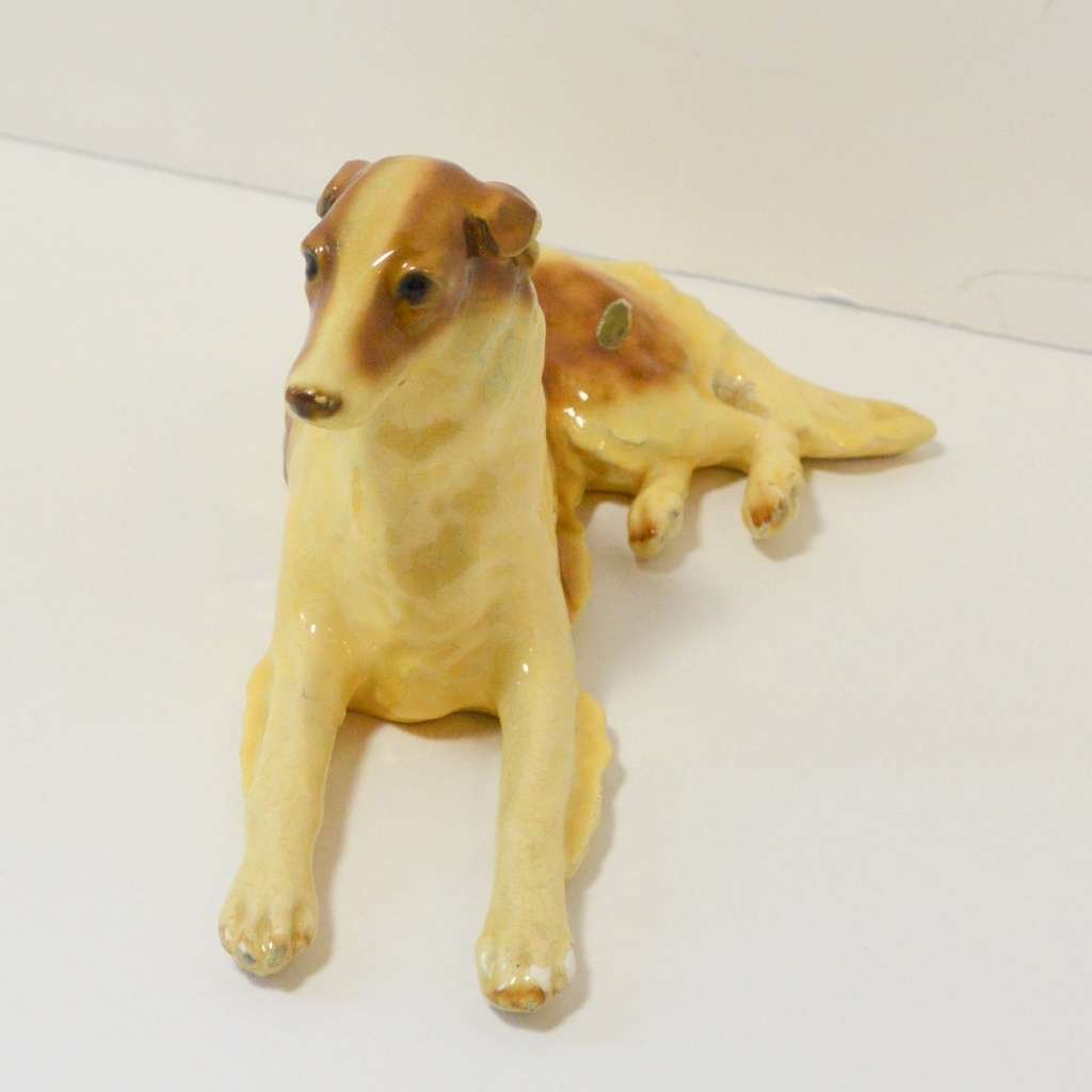 This truly elegant Borzoi dog figurine is reclining with her head held high and her expression alert.