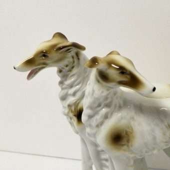 This wonderful, collectible, vintage porcelain Borzoi pair will be a unique addition to your Borzoi collection, as well as a fabulous decorative accent to any dog-loving home.