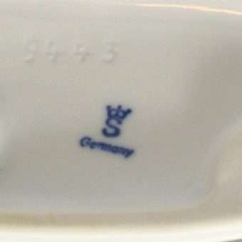 Made by the Sitzendorf Porcelain Factory in Thuringia, Germany, in the early 1900’s, they measure 5 1/2″ tall x 6 1/2″ long x 2″ wide and are in excellent condition.