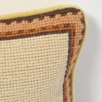 The needlework is an exquisite combination of petit pointe stitching on the dog’s head and face, and needlepoint on his body and background.