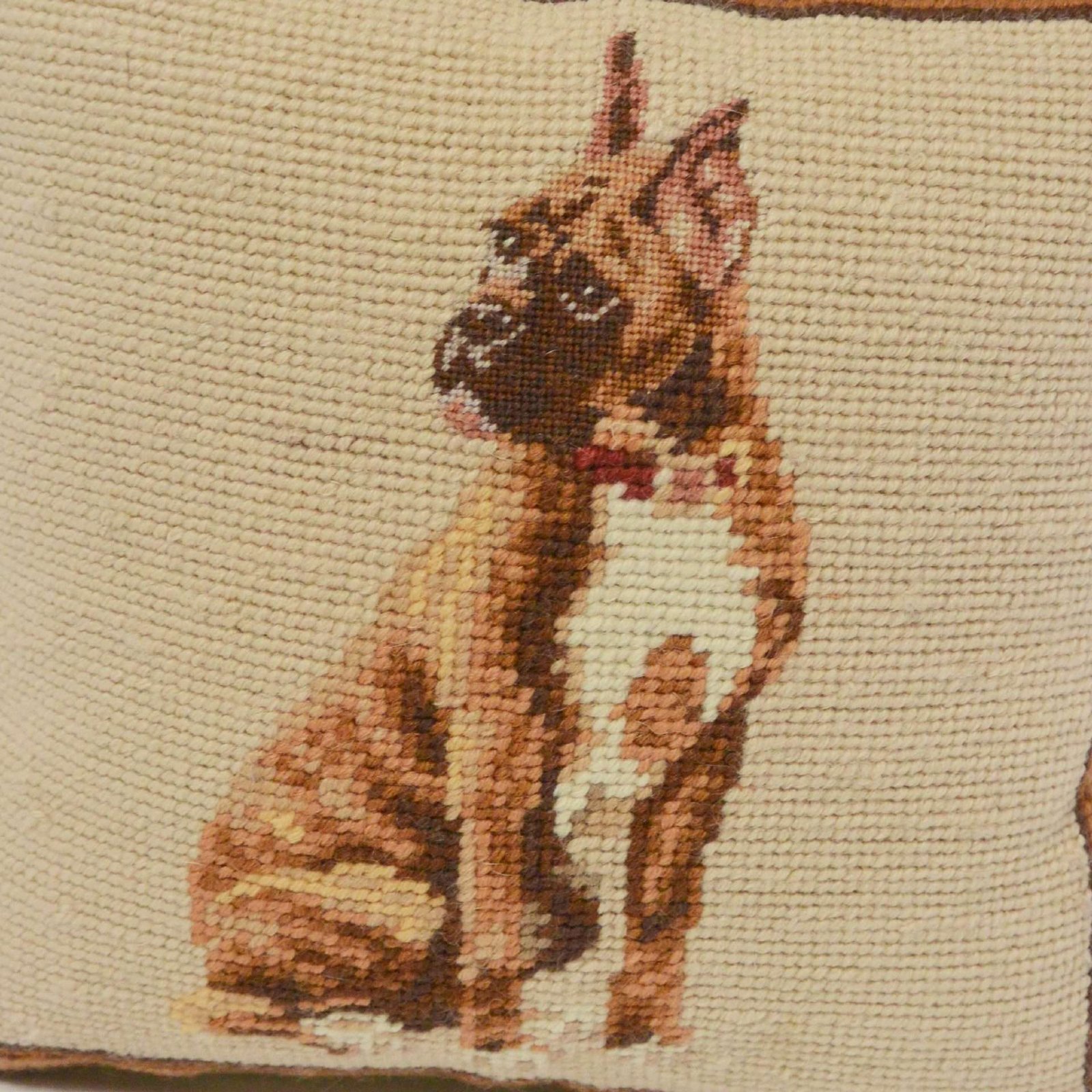 This wonderful vintage petit pointe pillow looks so much like a real Boxer dog, you may be inclined to stop and pet it as you walk by.