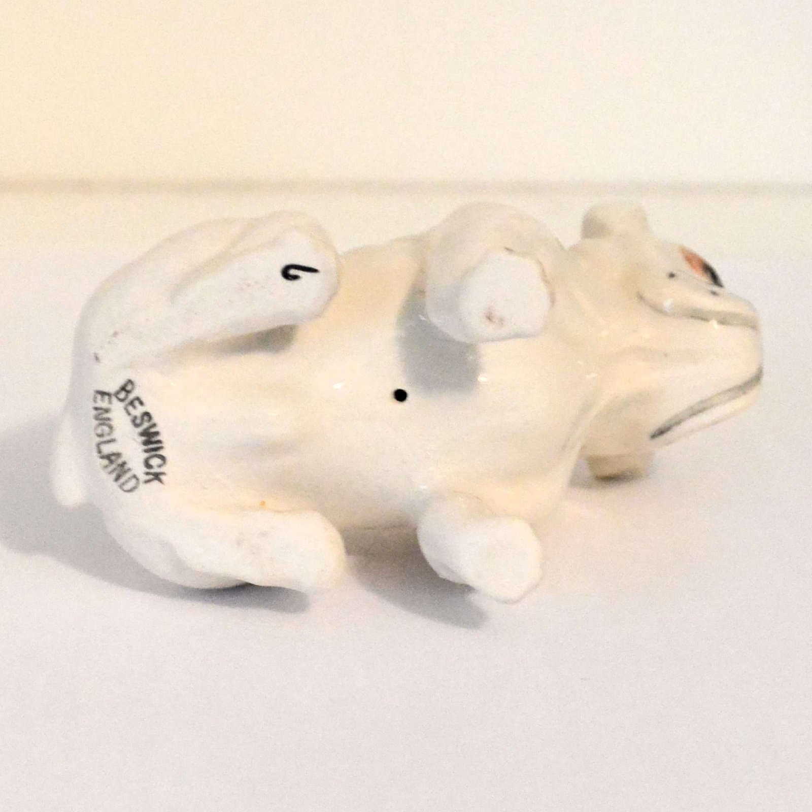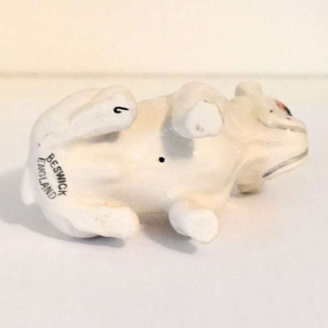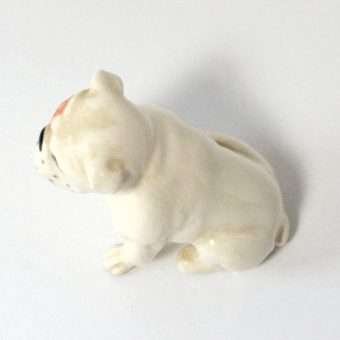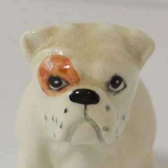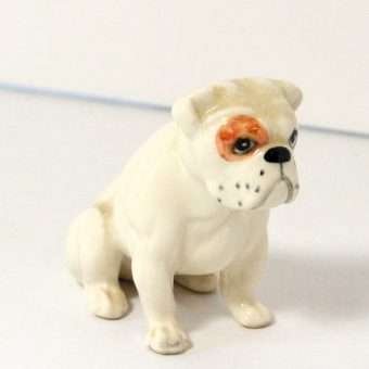 Small but mighty, this fabulous porcelain Bulldog figurine was made in the Beswick porcelain factory in Stoke-on-Trent, England.