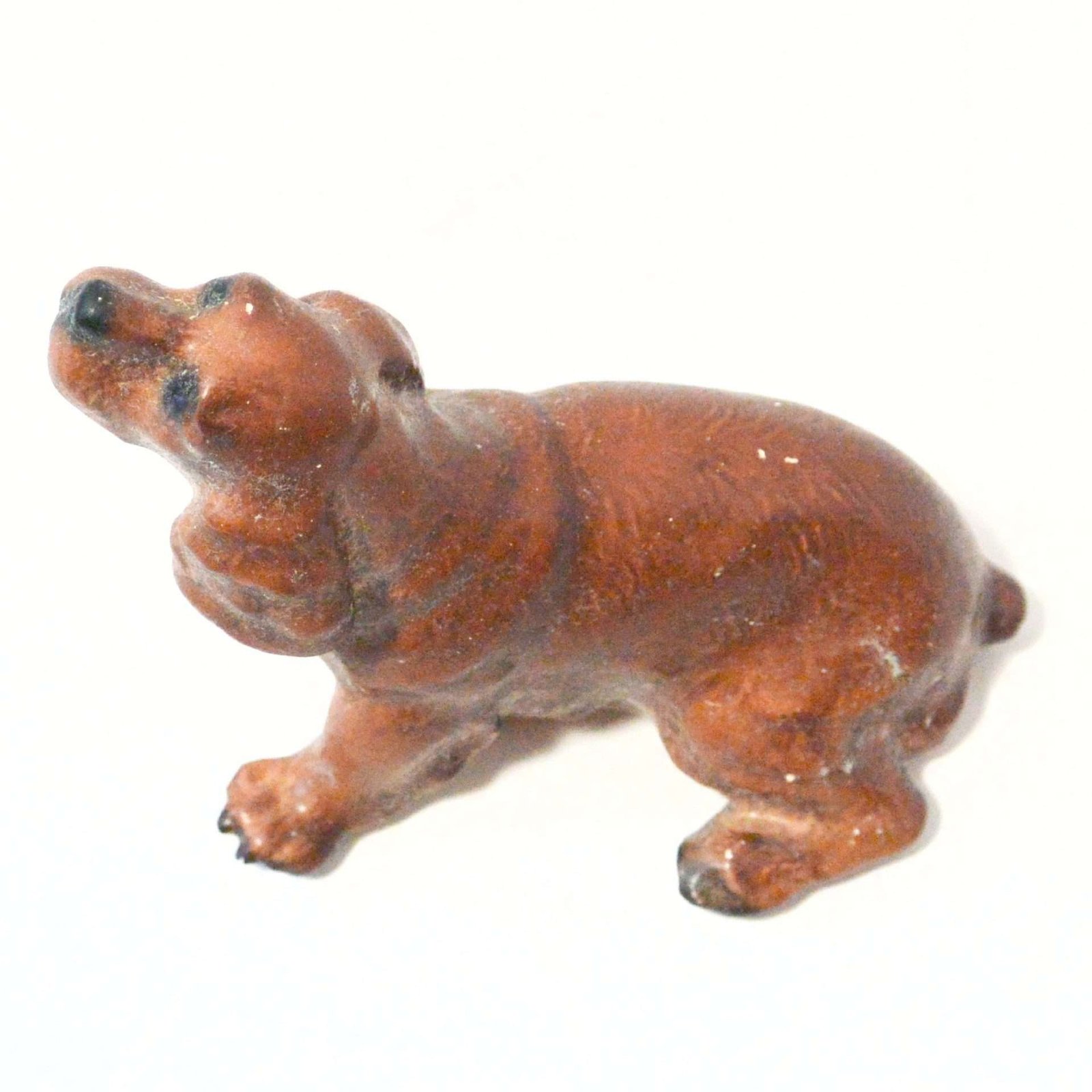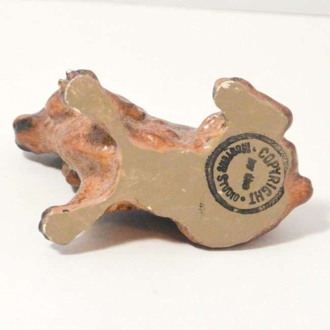 The designer of this figurine, Oscar Morten, immigrated from Sweden to the U.S. and opened a gift ware studio in Chicago in 1931. Over the next two decades, he created over 300 popular dog and horse models. Composed of ceramic over a metal skeleton, these figurines, although beautiful and engaging, were prone to crazing and flaking, thus making it difficult, today, to find examples in perfect condition.