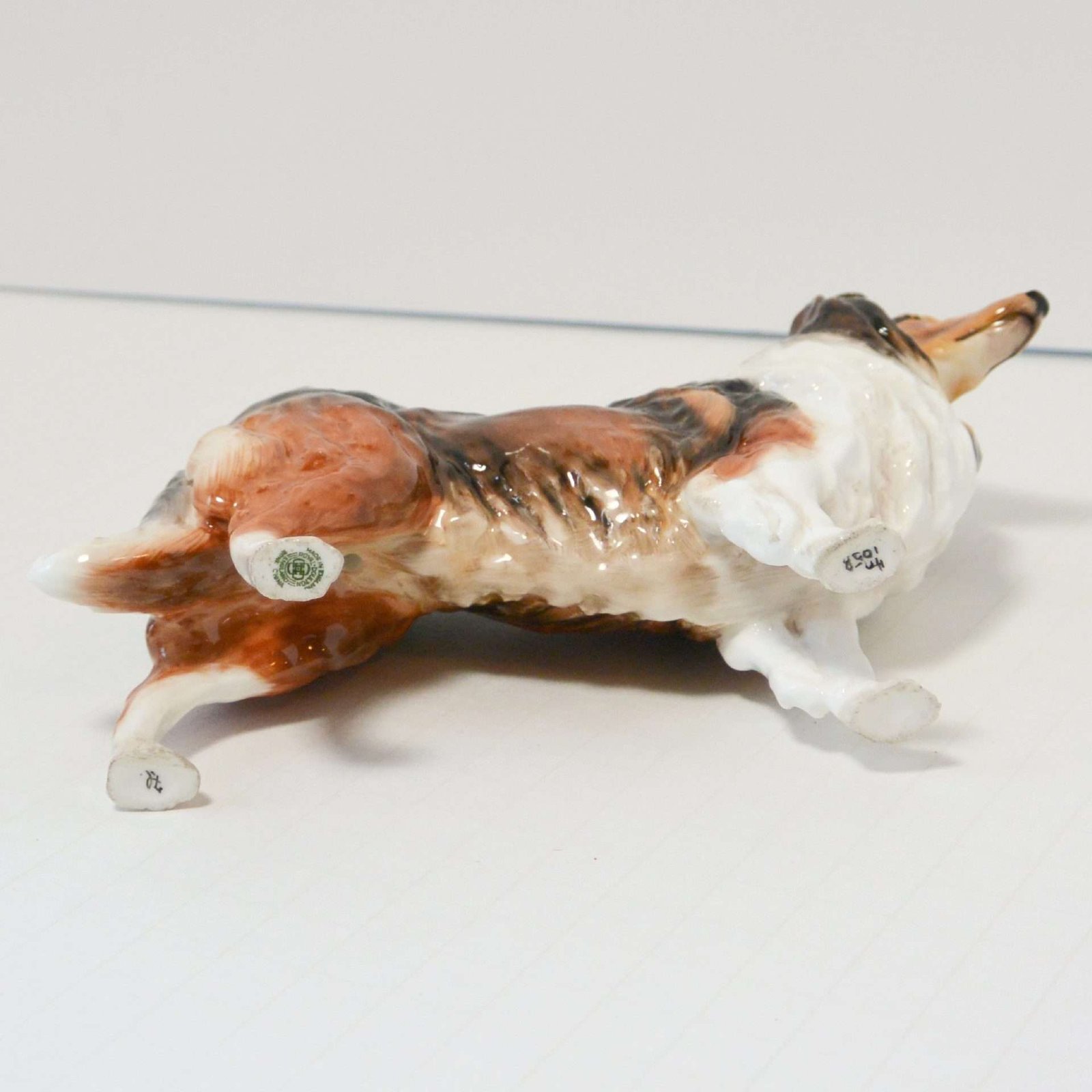 This exquisite, Royal Doulton Collie dog was modeled after a noted champion Collie, “Ashtead Applause”, who was owned by a Mr. Roberts c. 1930. A photo of this champion Collie was published in Hutchinson’s Dog Encyclopedia around that time.