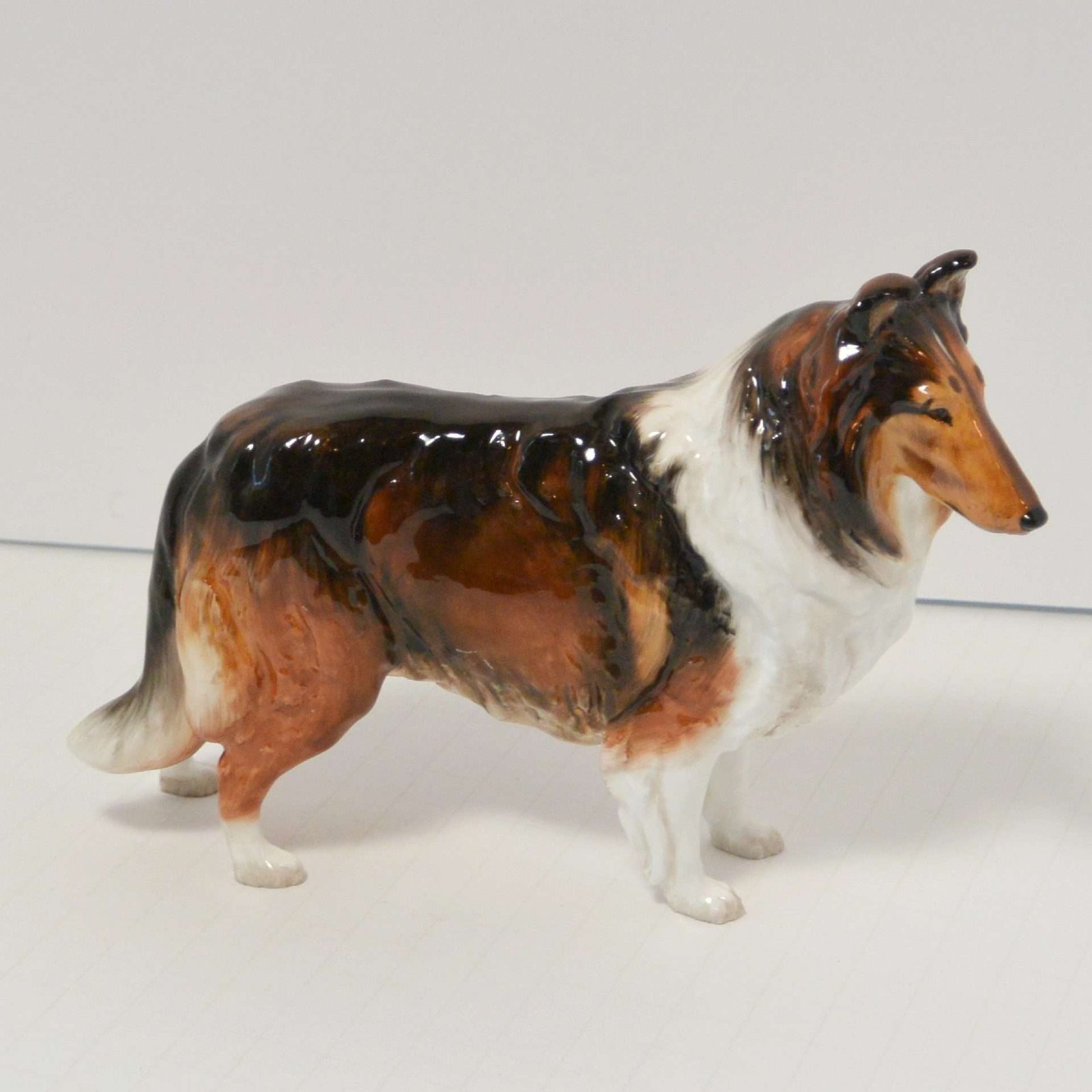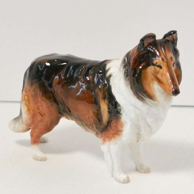 It is one of Royal Doulton’s most beautiful dog figurines. The fur lines on this Collie are exquisitely done, making this porcelain dog figurine look almost real. If you look closely, you will see that the eyes on this dog, are not only gorgeous, but they capture the gentle, sterling character of this fabulous breed.