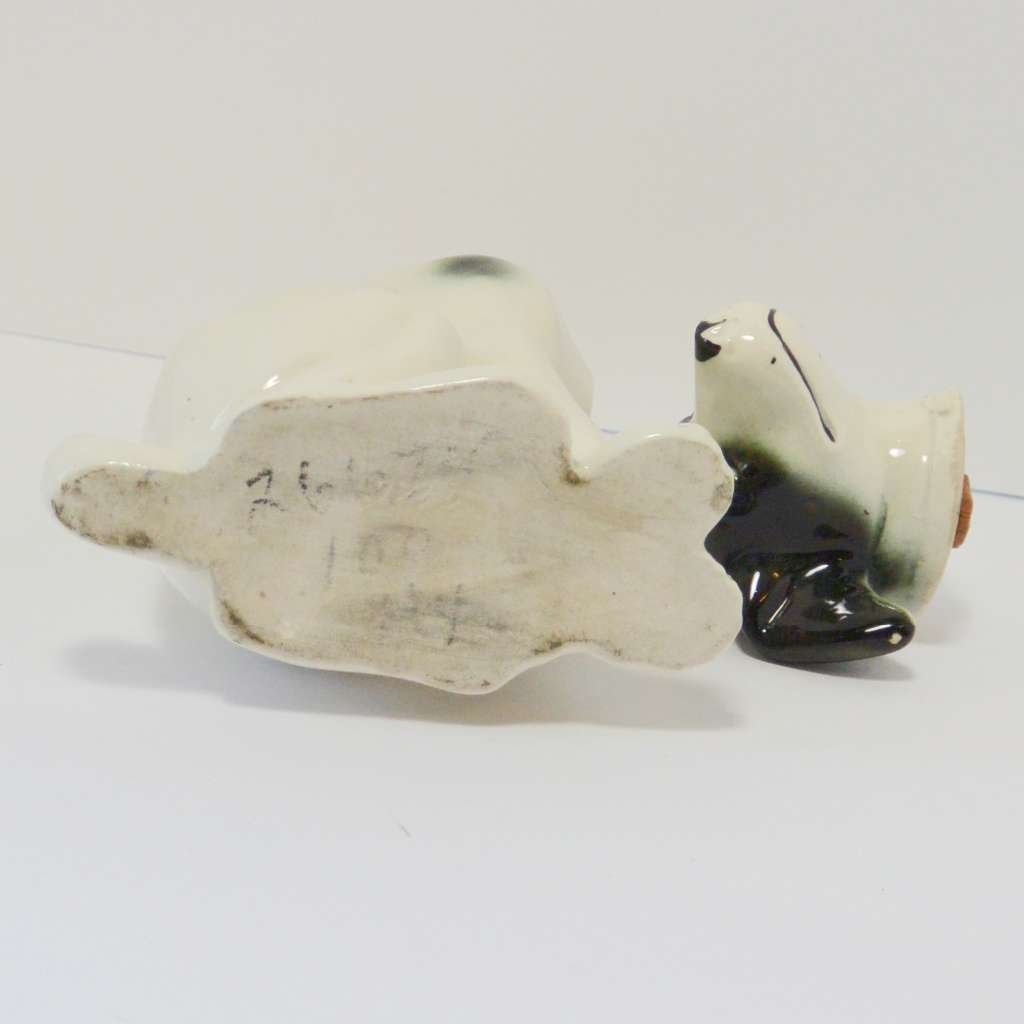 She could be put to her original use as a liquor decanter, and she is also quite lovely enough to be displayed as a special addition to you Fox Terrier collection.
