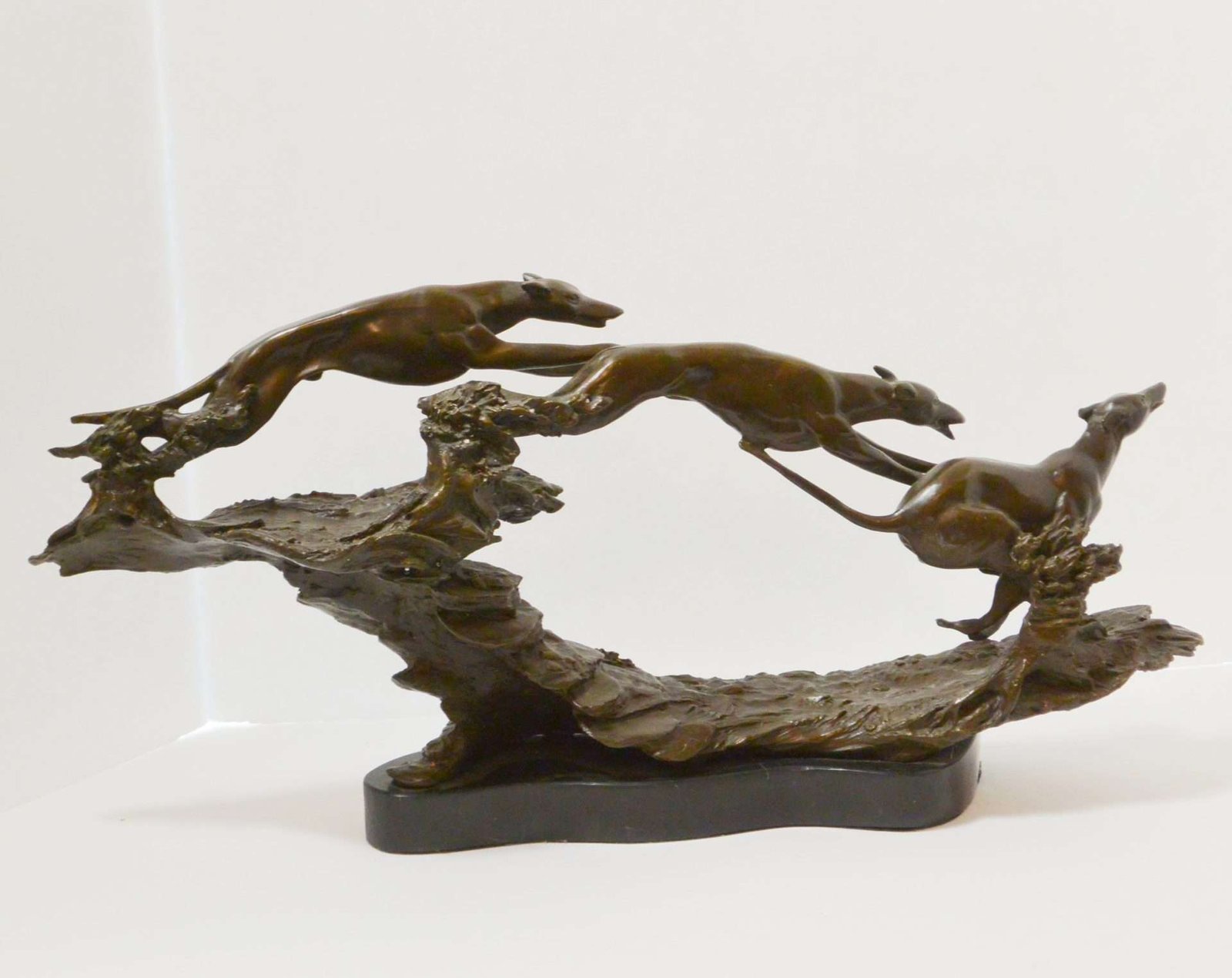 Bronze Greyhounds In Flight Figural