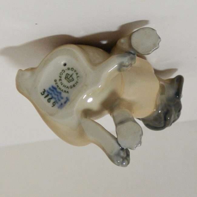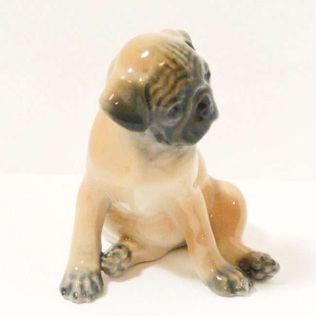 This delightful, porcelain Royal Copenhagen pug puppy was designed by Theodor Madsen, and made in Denmark c.1969.