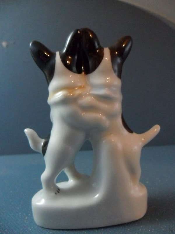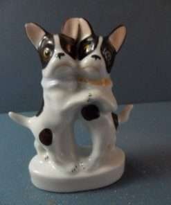 We love these circa 1925 French Bulldogs because they are dancing AND because they look like they may not be enjoying it so much! What a great Anniversary gift for favorite friends! Although they are quite old, they are in excellent condition. German hand-painted porcelain marked Germany and numbered along the side of the base. The number is difficult to read. Perhaps 938?