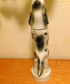 This elegant Springer Spaniel liquor decanter stands a full 15″ tall. It is in Excellent condition, and was made for Jim B. Beam Company by the Regal China Corporation in 1959. Standing at a full 15 inches, this beautiful dog will make a unique and elegant addition to any bar.