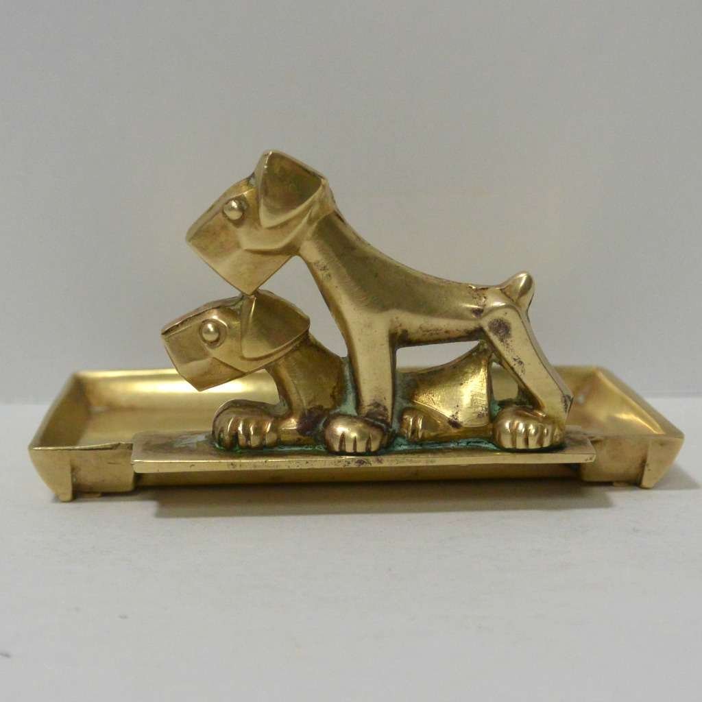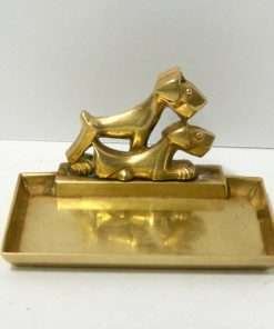 Antique Art Deco Brass Pin/Card Tray with Two Scottie Dogs c. 1930’s
