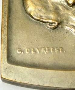 This exquisite, bronze Dog award medal was designed and is signed by Godefroid Devereese, a famous Belgian engraver and artist of the Art Nouveau period.