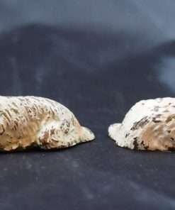 This engaging pair of Wire Haired Fox Terriers are exquisite examples of Cold Painted Vienna Bronze. Their naturalistic finish was created by painting the raw bronze with several layers of special “secretive” enamel colors, called “dust paints”. Because the color was applied after the item was cast, rather than “fired” into the piece, the process is referred to as “cold painted”. These two canine friends/siblings are solid bronze with their original paint, which shows characteristic wear due to the paint process and their age. We are not sure that they have been together all these years, but it would appear so, and we would like to keep it that way. They are so irresistible to look at that we are sure you will catch yourself “petting” their heads quite often!