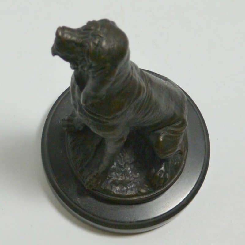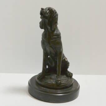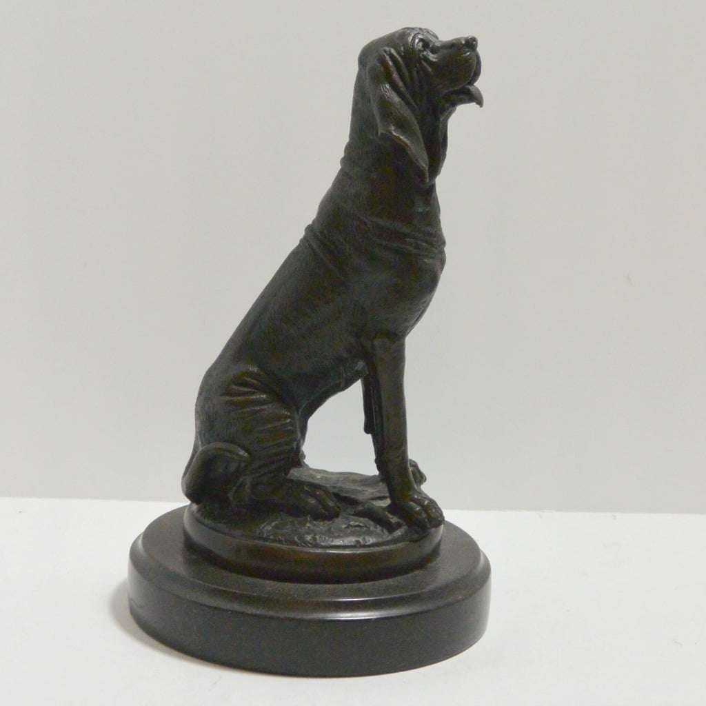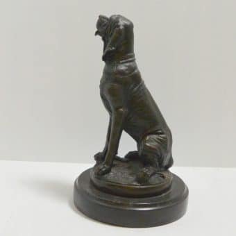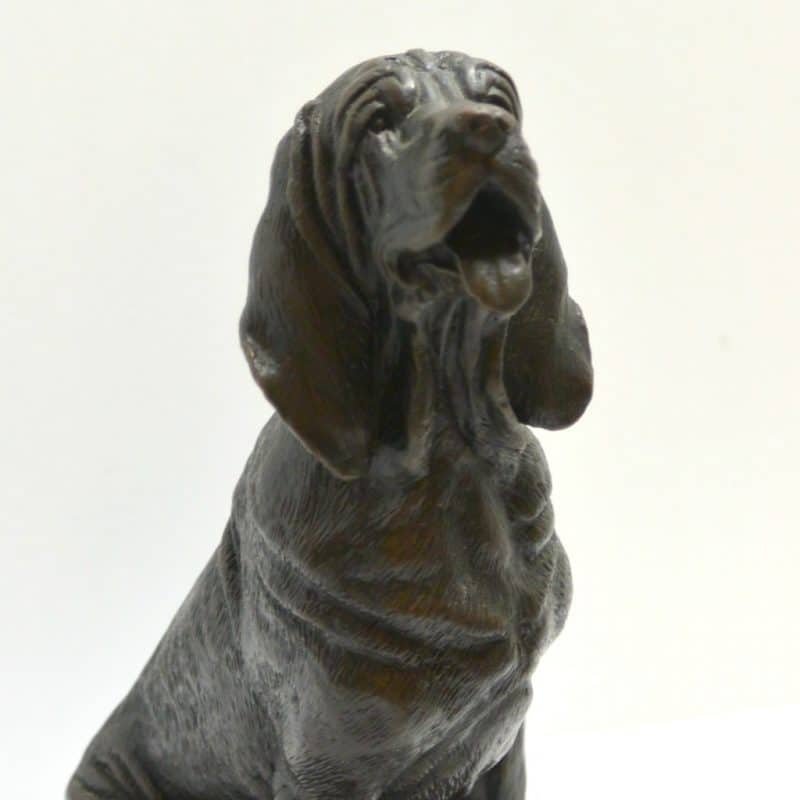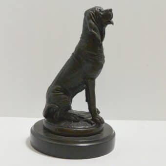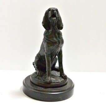 This wonderful, bronze dog could either be a Bloodhound or a Coonhound. It was originally modelled by Auguste Nicolas Cain, who was a member of the Animalier School in France, was a protege of Pierre Jules Mene, and married to Mene’s daughter.