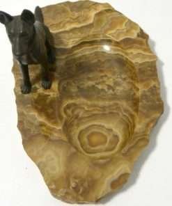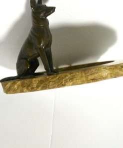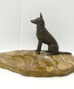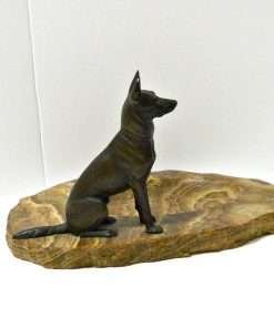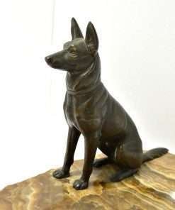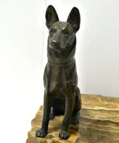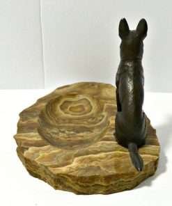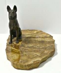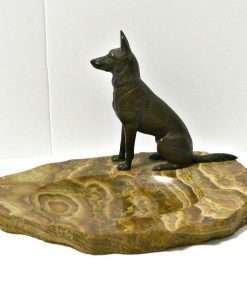 Sitting alert and proud, this bronze German Shepherd dog certainly looks like he takes his job, of guarding whatever is placed in this marble dish, seriously.