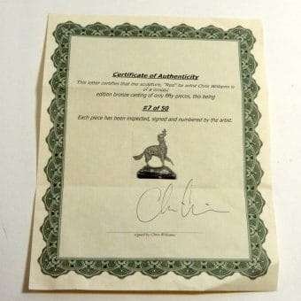 This beautiful, bronze dog looks to be either a Spaniel or a Setter. It is a limited edition bronze by Chris Williams, done early in his career.