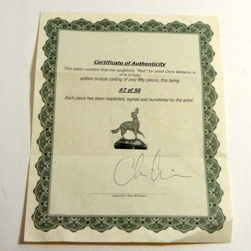 It comes with a certificate of authenticity, signed by the artist, that lists this figurine as #7 out of 50 produced.