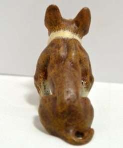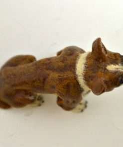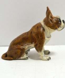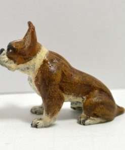 This exquisite French Bulldog is an original Vienna Bronze, designed by Franz Bergmann and handmade in Vienna by the Franz Bergmann-Fuhrmann Company between 1870-1920. It bears the Bergmann “B”, enclosed in a “jug” mark. While every Bergmann bronze is uniquely beautiful, we are partial to the canines that have expressions so touching, that they “speak” to us. This sitting French Bulldog really tugs at our heartstrings. At 1 1/2″ tall x 2″ long x 1″ wide, he may be tiny, but he is hugely appealing. He is in excellent condition, numbered, and comes with his original black velvet pouch and a signed certificate of authenticity. This is a perfect gift for a “Frenchie” owner, or anyone who appreciates the incredible workmanship that goes into a Bergmann bronze.