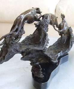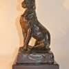 Imagine a greyhound in full flight and you can appreciate the glorious beauty of this bronze creation. Cast by the traditional hot cast or lost wax method in pure bronze, it is a very substantial piece, mounted securely on a solid piece of black marble. It looks extraordinary whether it is placed on a mantel , a coffee table, or as a focal piece in an office or board room.