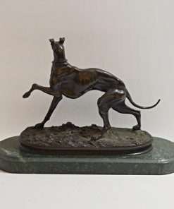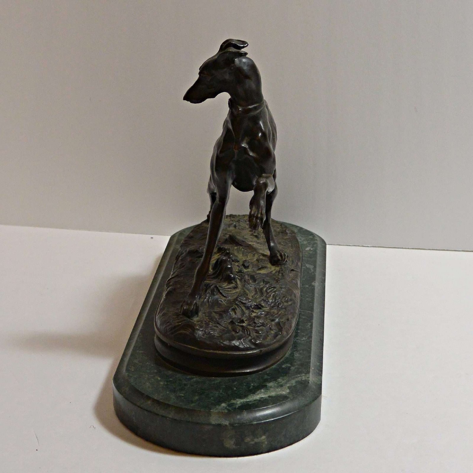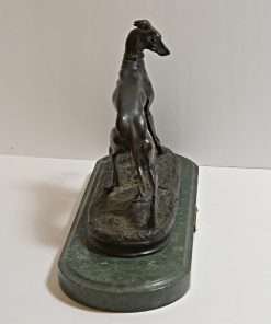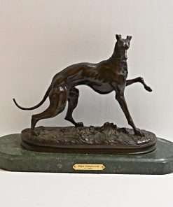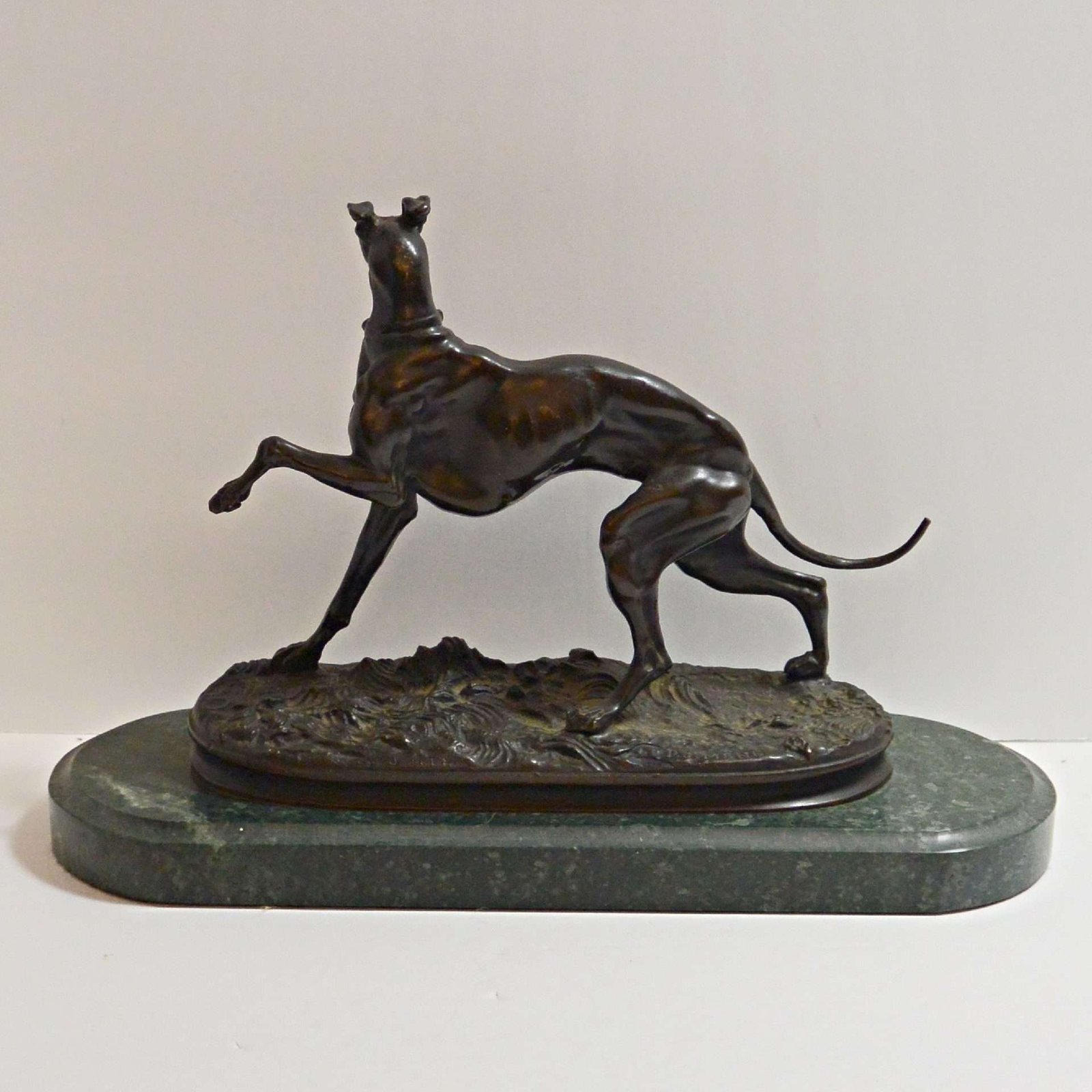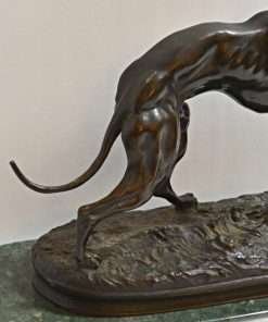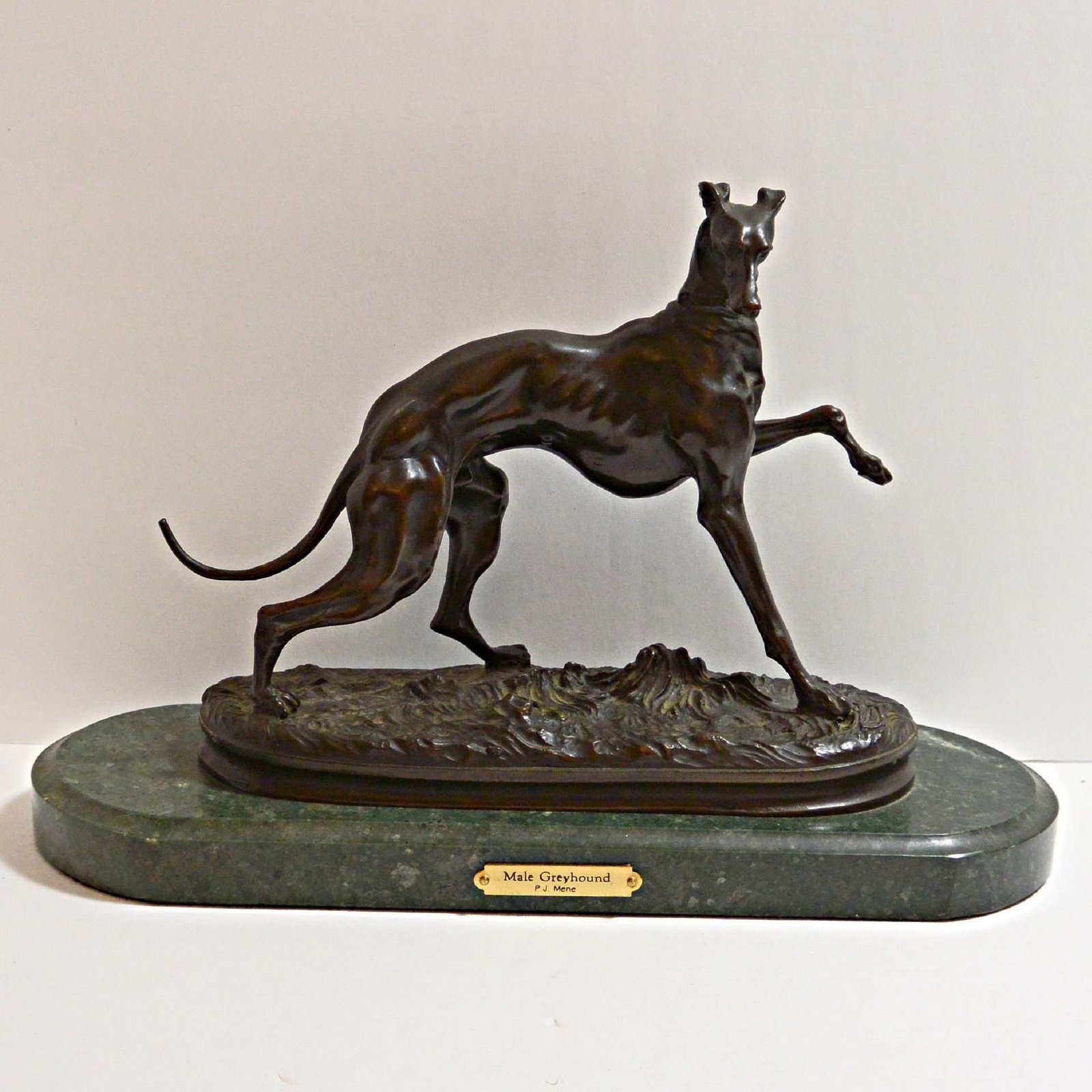This extraordinary, bronze, male Greyhound dog figurine was modeled by Pierre Jules Mene during the late 1800’s.