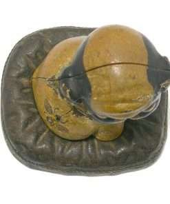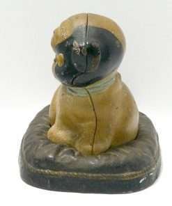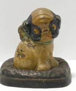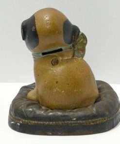 This “Puppo” still bank of a puppy is quite well-known. This sweet little puppy, sporting a big bow and sitting on a pillow, is looking, with great concern, over her shoulder at a bee that has landed on her.