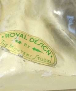 The designer of this figurine, Oscar Morten, immigrated from Sweden to the U.S. and opened a giftware studio in Chicago in 1931. Over the next two decades, he created over 300 popular dog and horse models. Composed of ceramic over a metal skeleton, these figurines, although beautiful and engaging, were prone to crazing and flaking, thus making it difficult, today, to find examples in perfect condition.