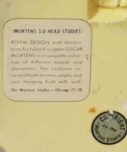 Measuring 4″ tall x 3 3/4″wide x 1/2″ deep, she is part of Oscar Mortens 3-D Head Studies which originated in the early 1940’s and originally sold for $1.50.