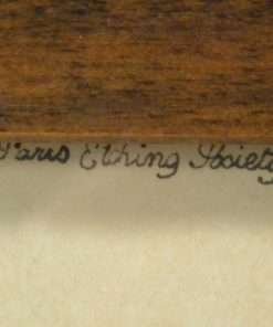 The etching is pencil-signed by the artist, Paul Wood (1897 – 1964). The portrait is entitled “Setters”, which is written in pencil in the lower left corner. There is another word, also written in pencil next to it, that unfortunately, we cannot decipher. It also has “Paris Etching Society” written in the top right corner. It measures 11 1/4″ tall x 15 1/4″ wide.