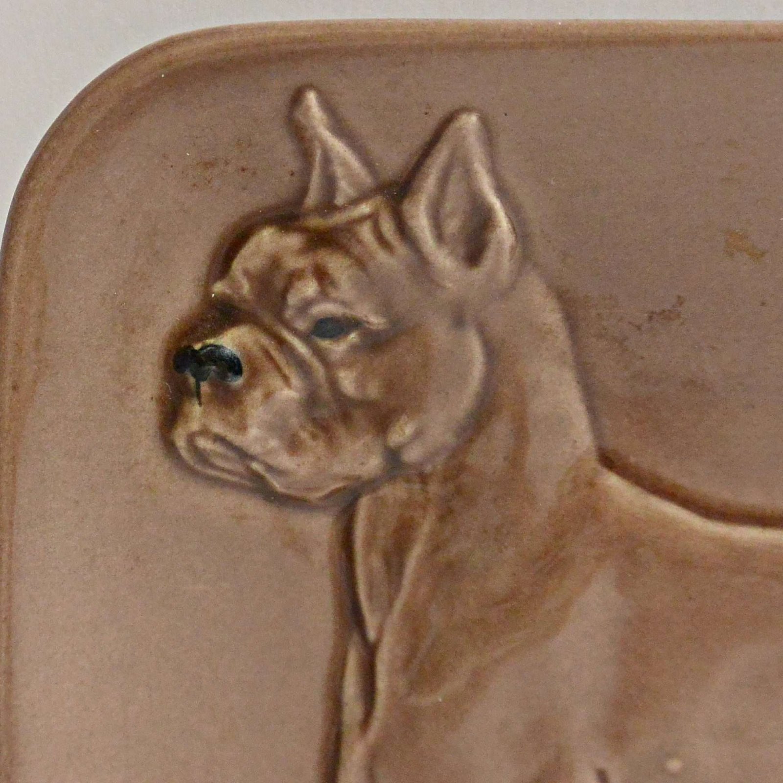 It features a standing Boxer dog, done in the relief mode. The color is a rich, chocolate brown with a high gloss finish.